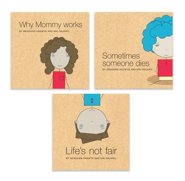 A healthy mind = a healthy body. So I’m a big fan of books that teach positive lessons. I received this package from Other Life Lessons today, and I balled my eyes out reading the book “Why Mommy Works”. With all the questions my kids are asking around death, “Why Someone Dies” couldn’t come at a better time. And I have a feeling “Life’s Not Fair” is going to be a daily read.